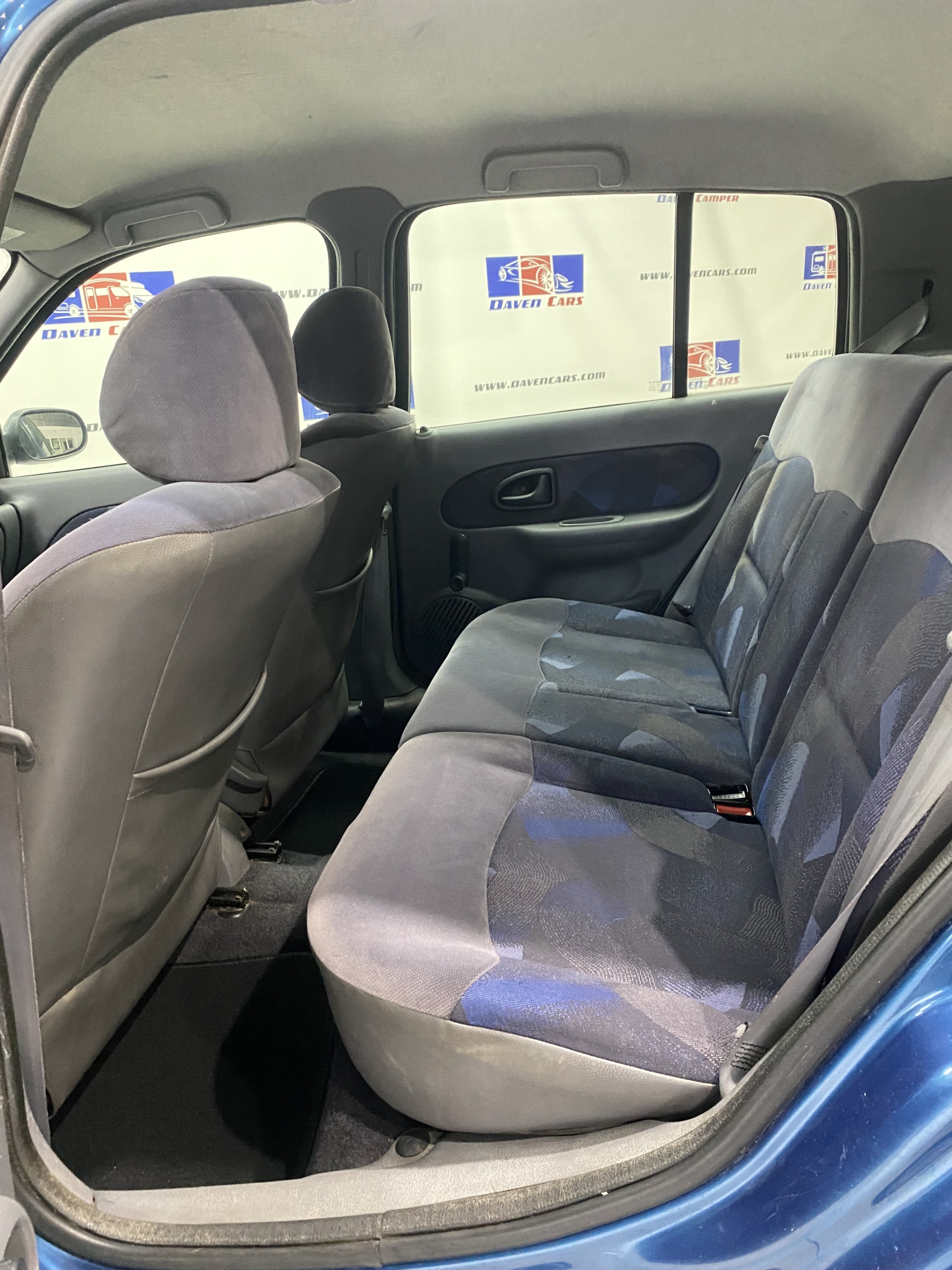 - Tapicería de tela azul.